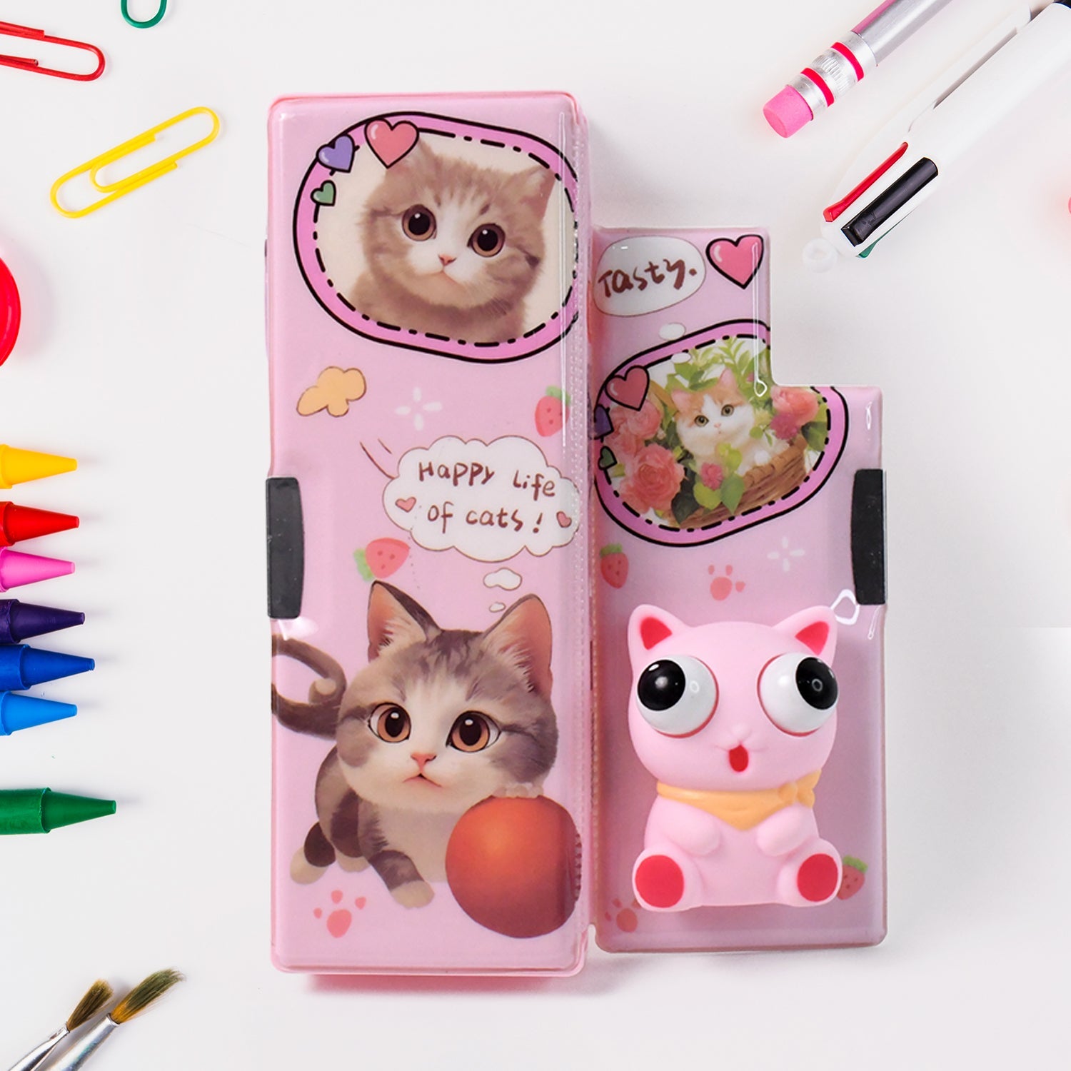 pencil box , stationery organizer , pencil case with sharpener , multifunction pencil box, school pencil holder , school supplies for kids , stationery box for girls , gift for students , cartoon pencil box , 3D animal pencil case , pink stationery box